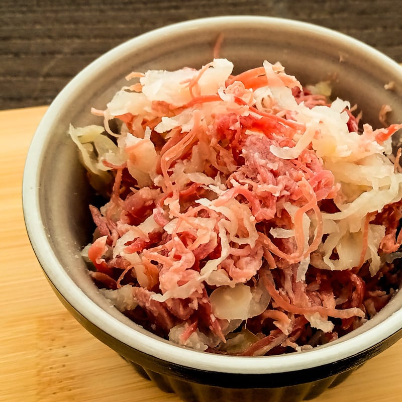 長期間塩漬け(コーンド)した牛タンのかたまりを、じっくりと煮込み、丁寧に手作業でほぐし、仙台味噌を使用したタレで味付けしました。